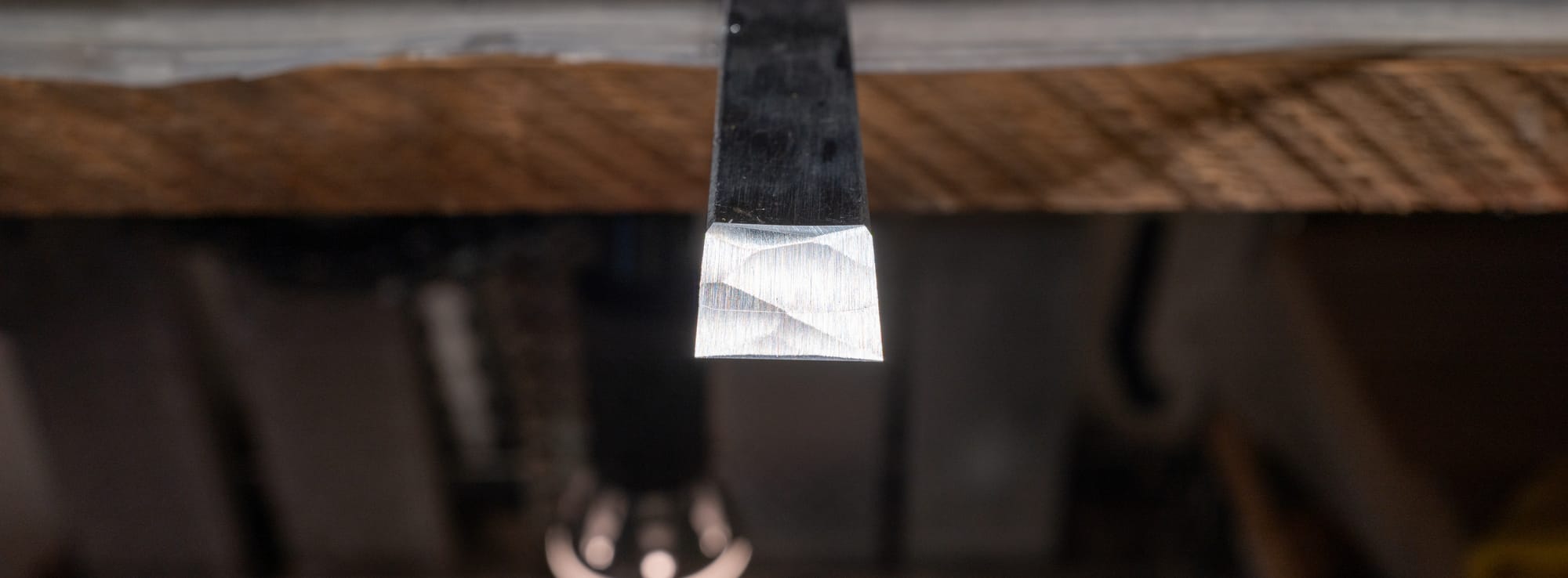 The angled legs needed to be chiseled out to the shoulder line, which I did by eye using layout lines on the edge.