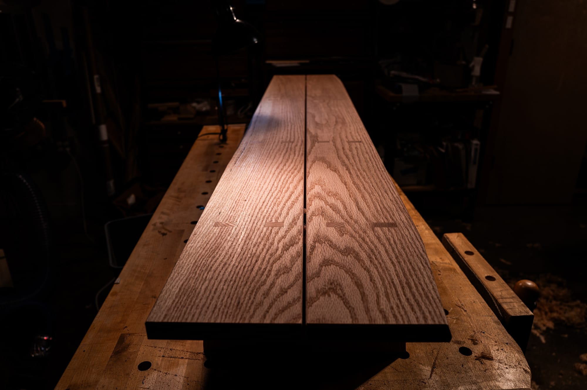 After that, I gave it a basic finish plane, but nothing too crazy as the mortises and legs had tensioned some of the flatness out of the top boards, making a more pristine finish difficult.