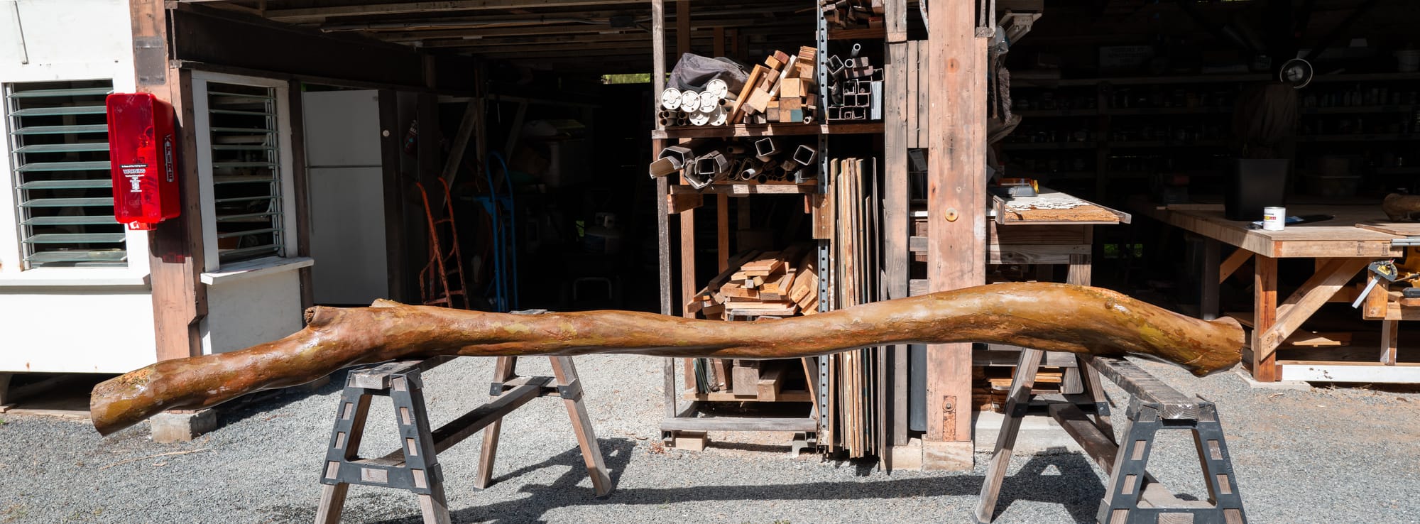 On island, my friend Keola, who is serious enough about forestry to train on the mainland, helped us track down a strawberry guava log suitable for the class project's natural beam. We got it from a homeowner's property in Manoa, and some monks helped us haul it back to the temple where we seasoned it with some borate. Like a lot of fruit wood, it isn't exactly resistant to bugs (at all) and borate is part of the long term fix. The wood, when finished, is more uniform but not dissimilar to cherry in feel. Possibly a little softer. It's not often used for fine work, but I think it has potential. It's also an invasive species and culling it is welcomed, culturally. It also happens to be a beautiful tree, and commonly used in japanese-esque landscaping here. I have a few at our house.