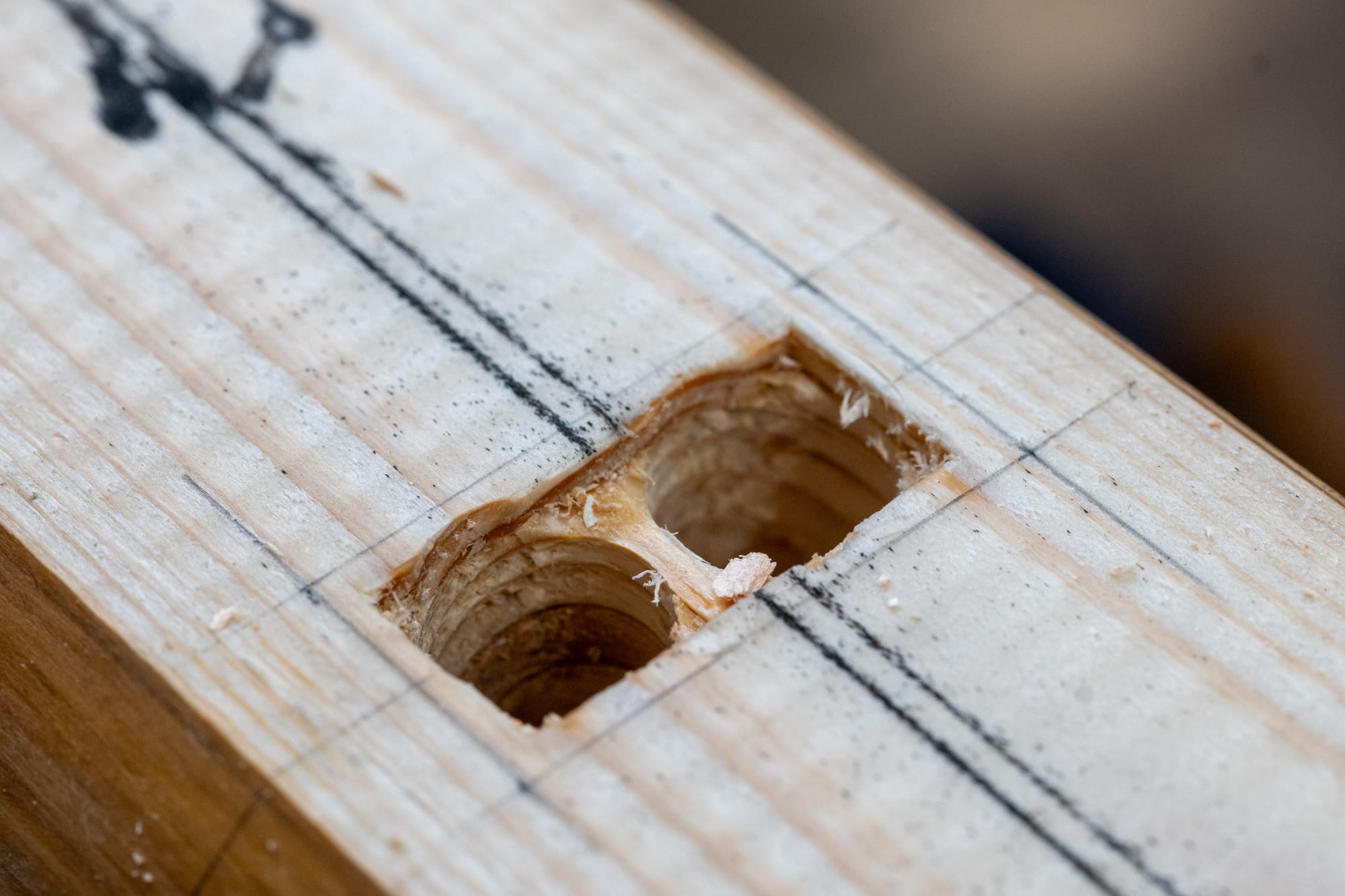When it was time to cut mortises in the posts for the sukiya fence project, I cut slowly and carefully. A natural round post left zero room for error. And, it was critical to not ruin a piece of wood that had already had dozens of hours of labor put into it by experienced professional carpenters.