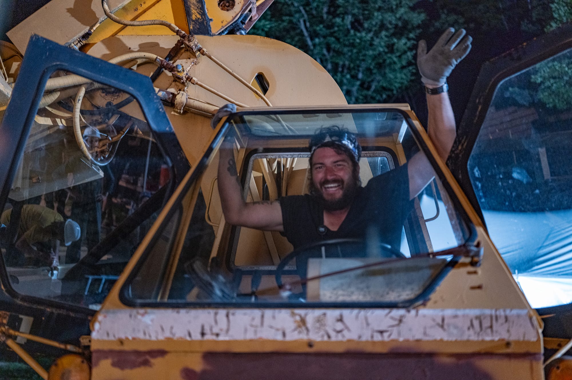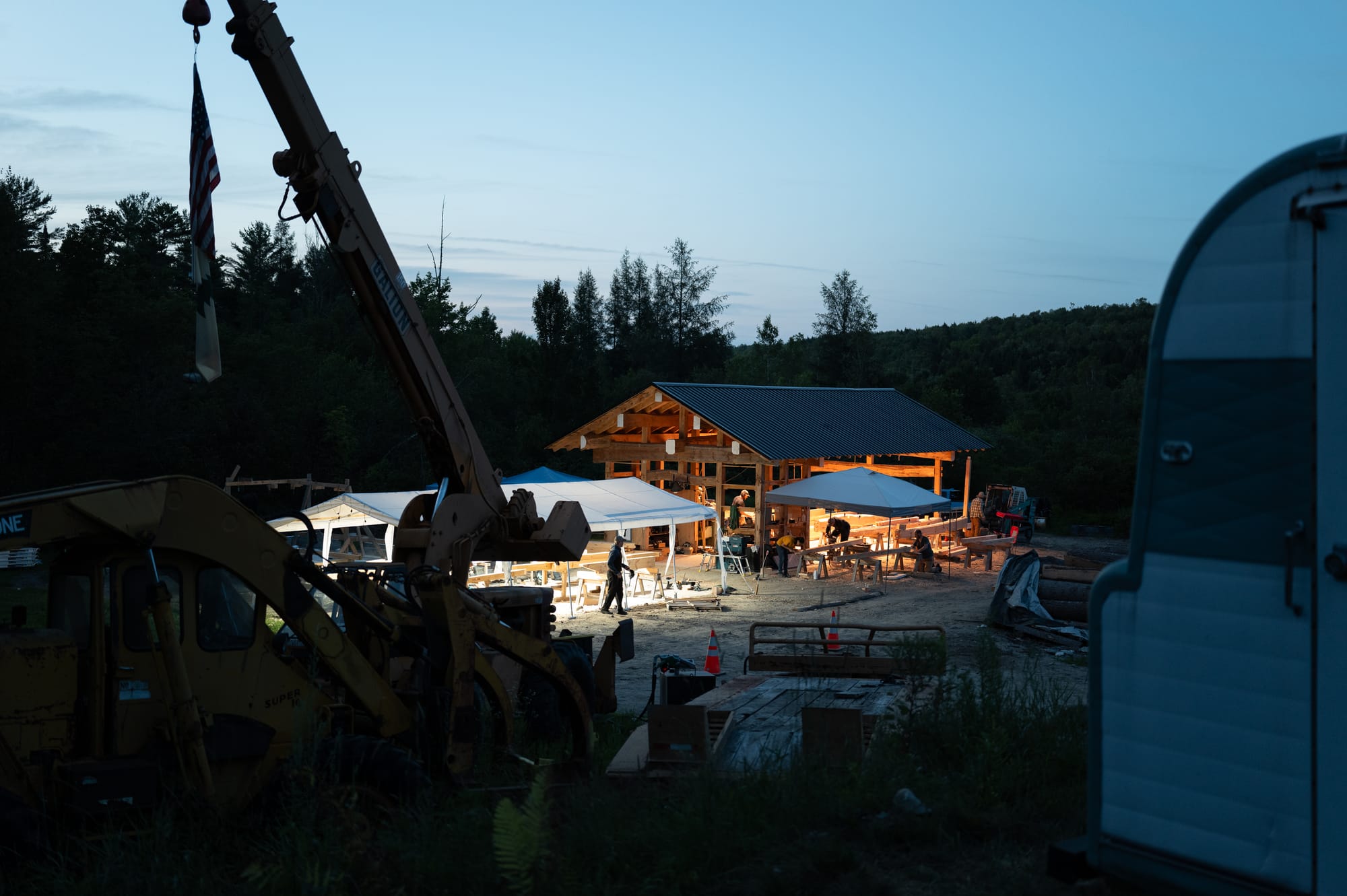 The frame was raised around midnight the night before the festival began. I asked Jason why he is crazy, and his answer was pretty straightforward: "I just think I'm doing what I wanna do and not taking no for an answer and not allowing obstacles to slow it down and just work on the problem."