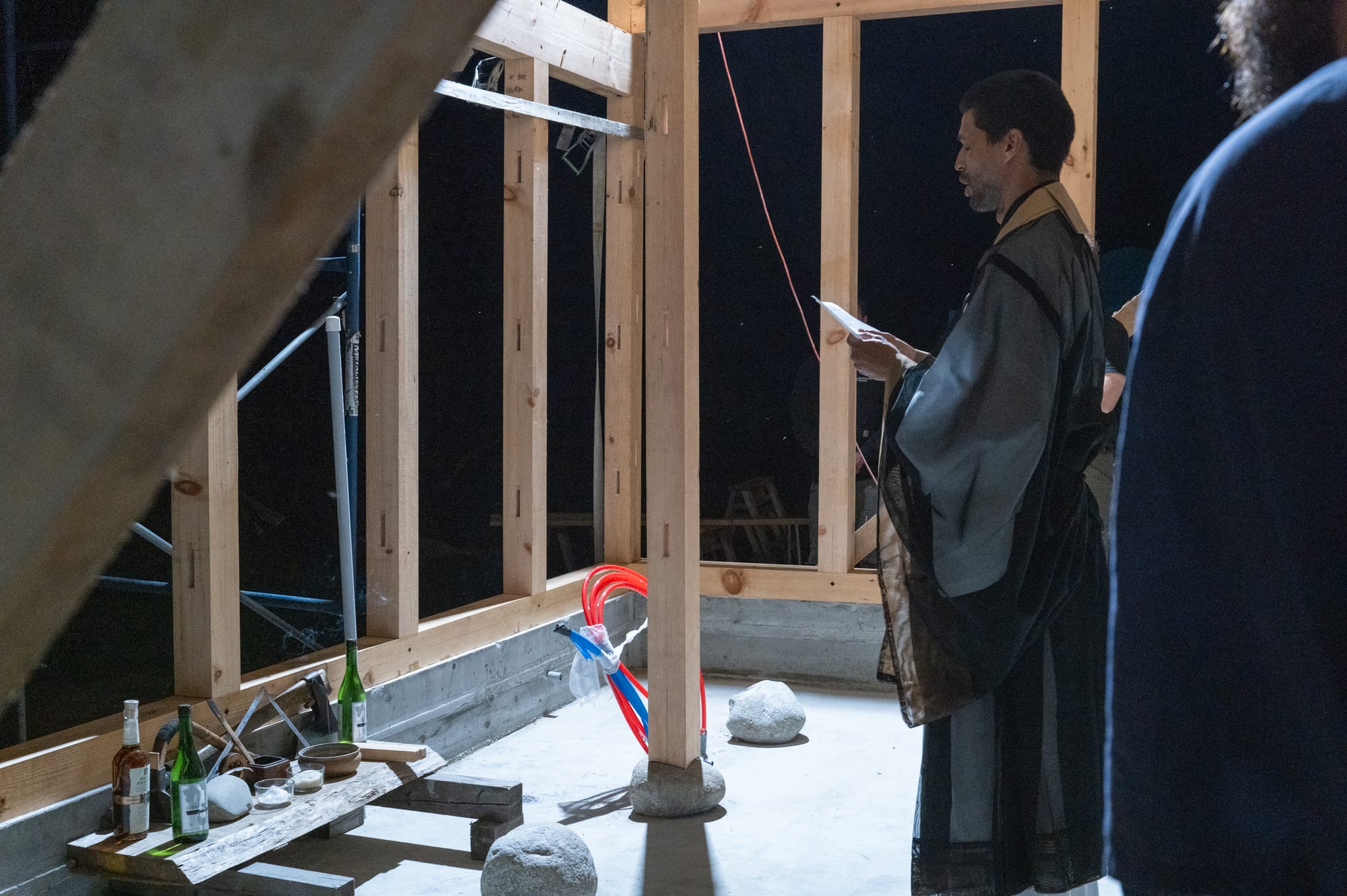 We celebrated the raising after Eric, priest from Chozen ji, blessed the frame. Then we turned in and prepared for the festival’s start.