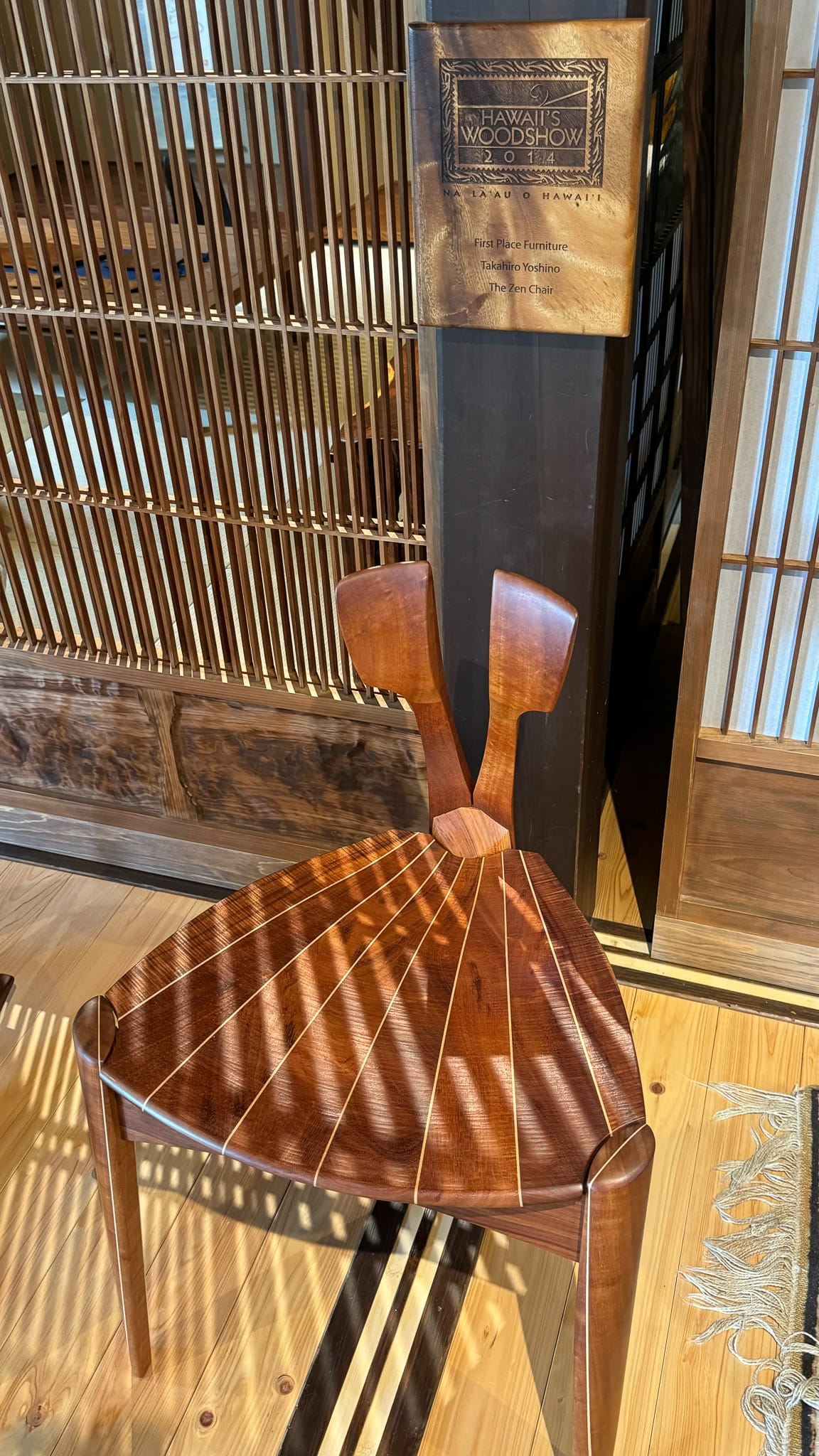 The room is filled with his chairs. There is a chair featured in Hawaii’s wood craft show.