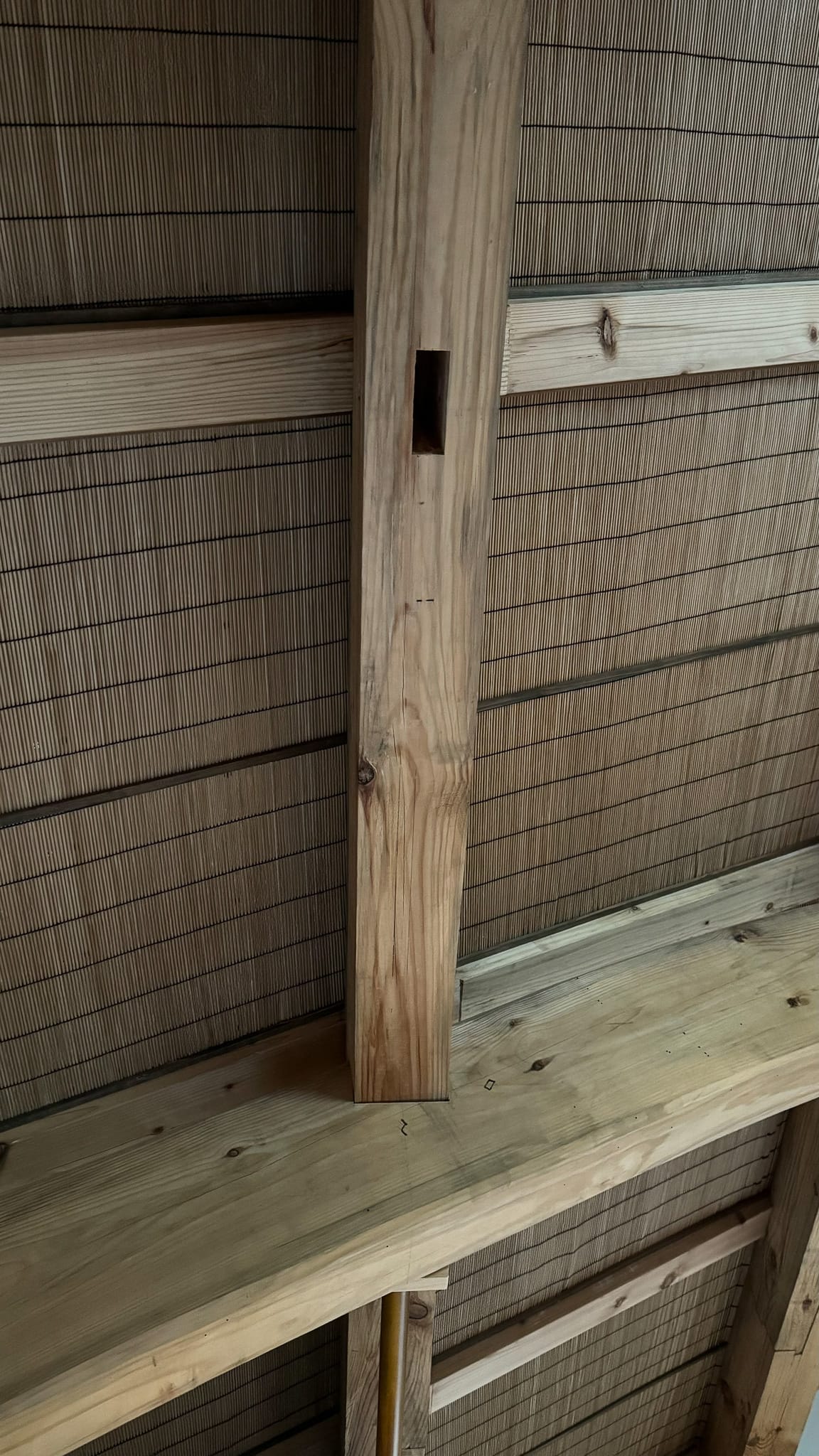 Lying down for the first time, I noticed an pegged mortise, in a beam, waiting for a tenon that it would never see.
