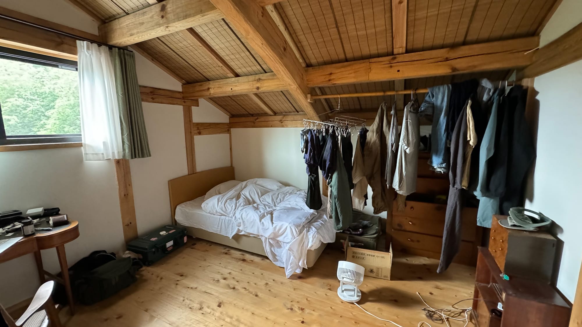 I slept on the second floor, above the work spaces. My room overlooked woods with pines and chestnut and cherry trees. It was rainy season, but the occasional heat wave would allow for a sliver of Mt Fuji.