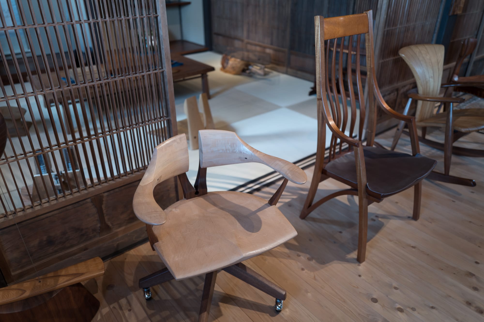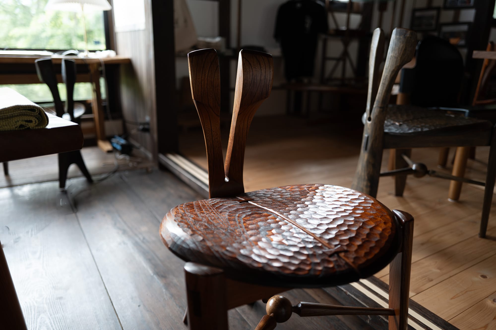 Tak-san was soft spoken. Over the weeks, we would gain a sense of his open-mindedness and through the stories he would tell about his life. He grew up studying jazz piano but switched focus to furniture at 21, after meeting another young pianist with supernatural skill. Still, all of his work and methodology seems to carry that sense of improvisation, harmony and creativity, often through a sense of flowing three dimensionality and curvature.